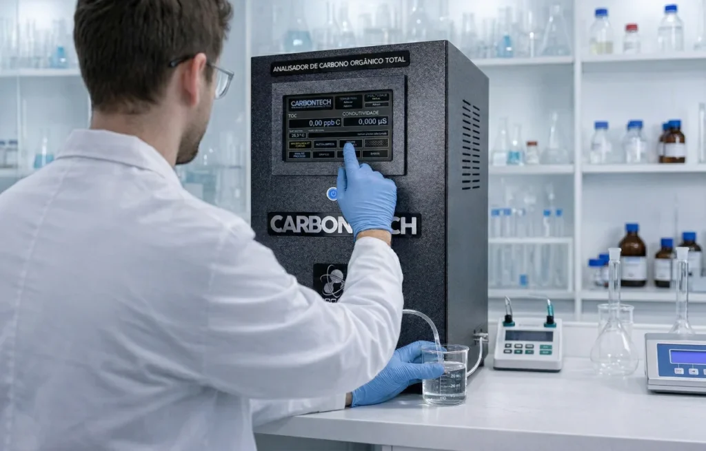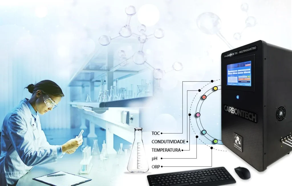O CarbonTech é um analisador nacional de Carbono Orgânico Total (TOC) desenvolvido para monitoramento da qualidade da água em tempo real, com tecnologia multiparâmetros e multiponto. Mede simultaneamente TOC, condutividade, temperatura, pH e ORP.
